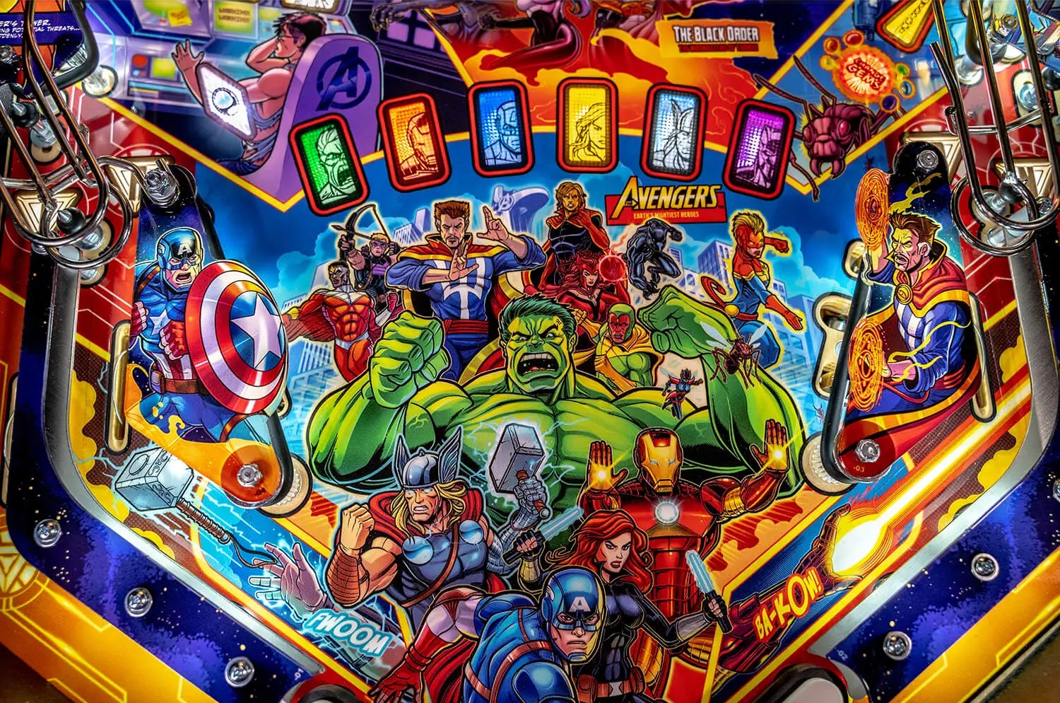 The Avengers: Infinity Quest Pro Pinball Machine by Stern was manufactured in 2020. The Avengers: Infinity Quest Pro Pinball Machine is based on Marvel’s The Avengers. For over 50 years the Avengers have delighted fans through comic books, television series and movies.