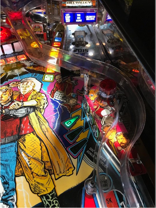 - Cabinet and translite feature Marty, Doc, the DeLorean, lightning, and Hill Valley