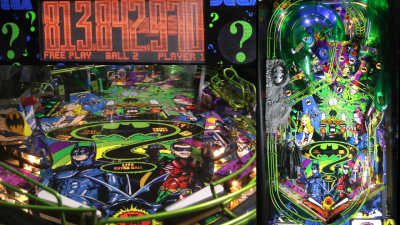 • Notable Feature: Batcave escape ramp that feeds behind the flippers and fires balls up the playfield during multiball