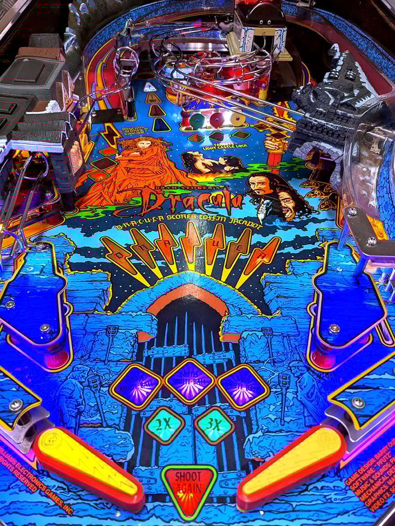Bram Stoker’s Dracula Pinball Machine by Williams was manufactured in 1993. It is based on the 1992 film of the same name.