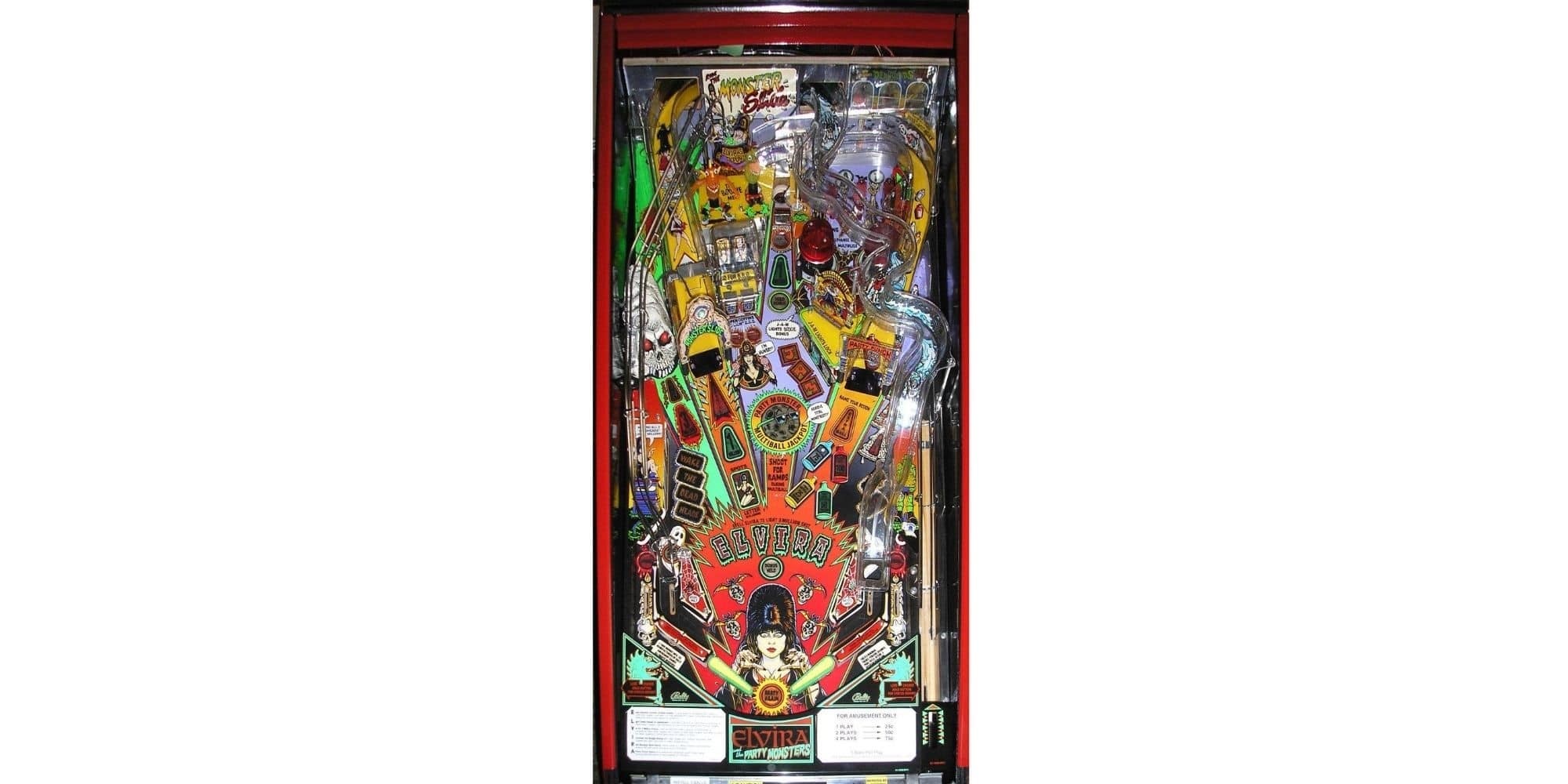 Elvira and the Party Monsters Pinball Machine was manufactured by Bally in 1989.  It is a licensed theme game based on Elvira.