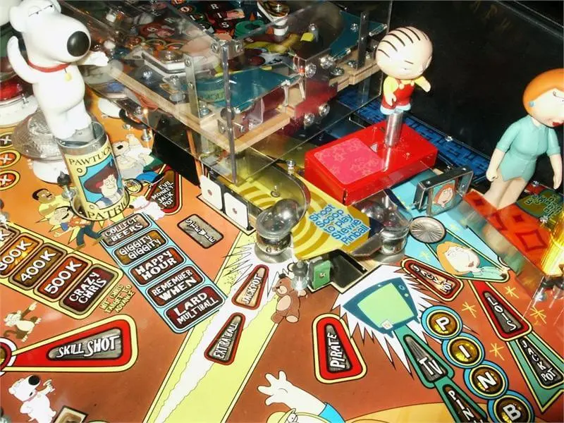 Family Guy Pinball Machine was made by Stern Pinball in 2007, and designed by Pat Lawlor and his team at Pat Lawlor Design.