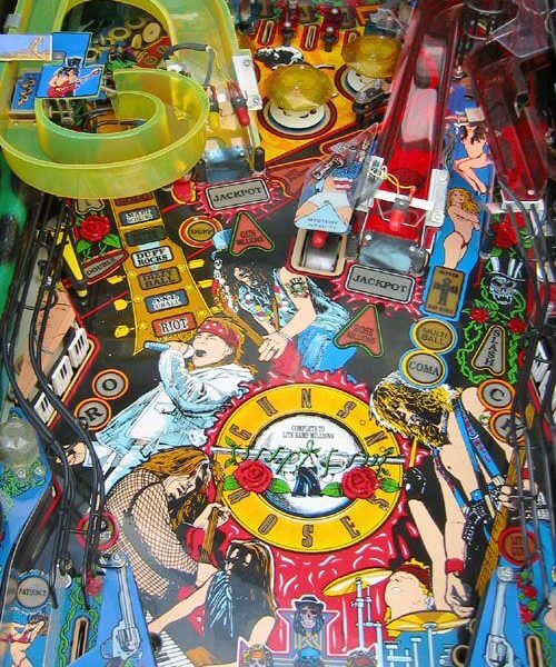 “Guns N’ Roses leaps off the stage and into your location with non-stop, head-banging, hard-rock, in-your-face, screaming pinball action!”