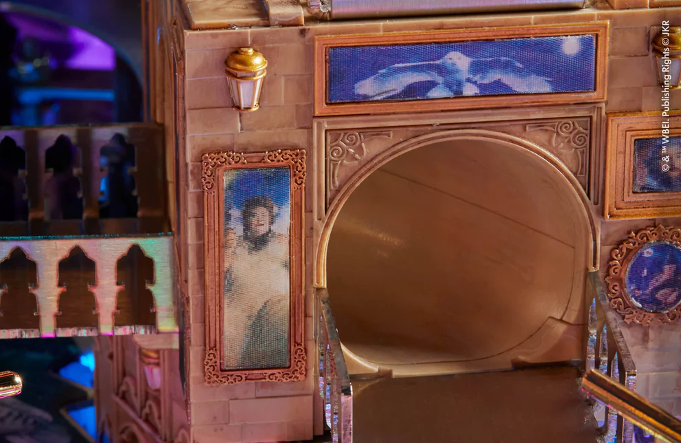 - Interactive Hogwarts Topper Featuring Hedwig, Flying Harry, Roving Snitch & Dark Mark Projector: A show-stopping topper, with layered motion, lighting, and projection. Hedwig soars, Harry flies, the Snitch darts, and the Dark Mark looms!