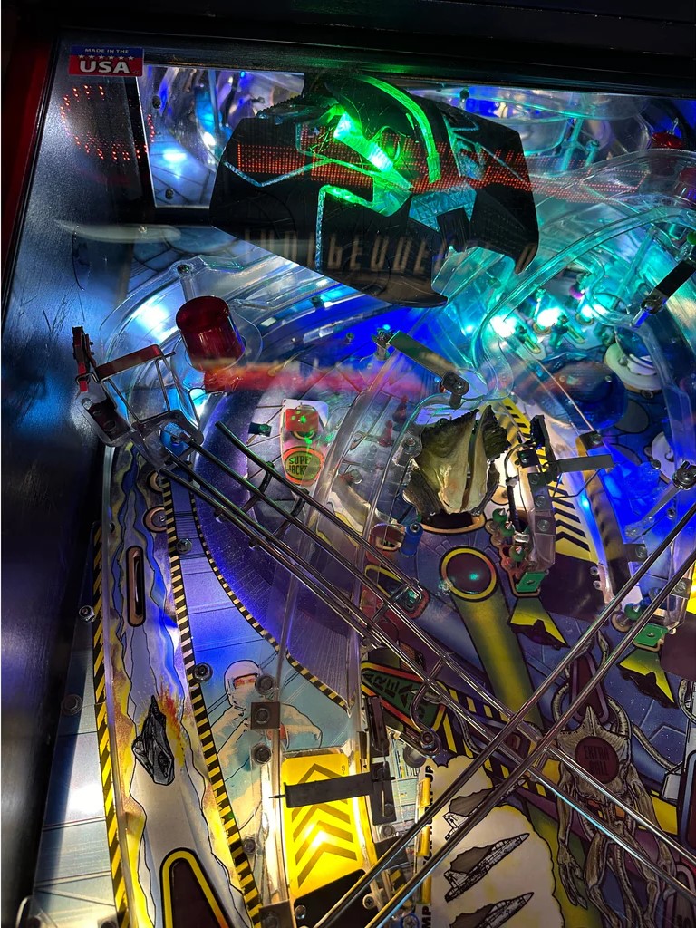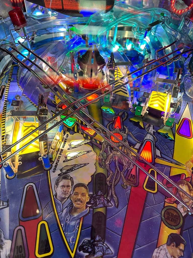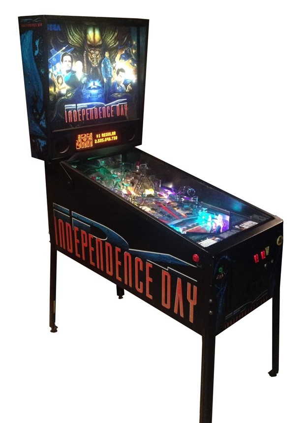 Independence Day Pinball Machine by Sega was manufactured in 1996. It is based on the movie Independence Day. A pinball invasion is about to occur. This is an outer space – sci-fi – action movie – themed game.