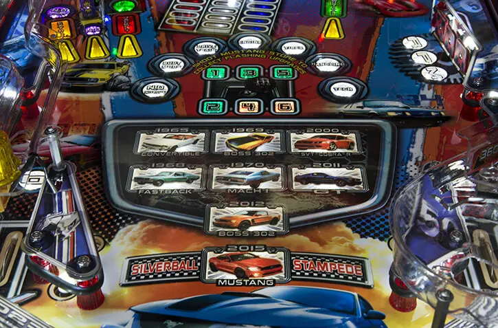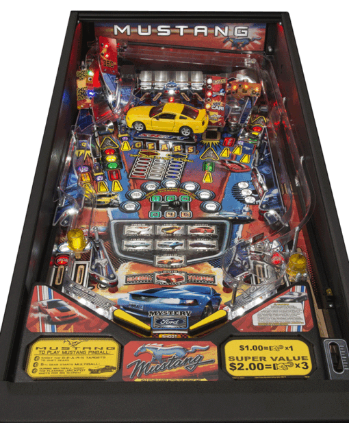 Mustang Pro Pinball Machine by Stern was manufactured in 2014. Ready your engines and celebrate 50 years of Mustang. The Mustang Pro Pinball Machine, exclusive to Ford, drops players into the driver’s seat of one of the hottest cars on the strip. Narrated by professional racing driver, Tanner Foust, this machine sets the tone for a fast paced, white-knuckle game. The game comes equipped with top-of-the-line features including artwork by famed Ford GT car artist and designer Camilo Pardo and the ultimate soundtrack from Sony Music featuring five decades of hits.