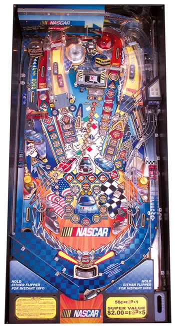 Merging the speed of the racetrack with the speed of the silver ball, Stern Pinball, Pat Lawlor, and his team at Pat Lawlor Design, bring out another hit. NASCAR Pinball features the high energy of NASCAR racing along with the fascination of high-tech gaming.
