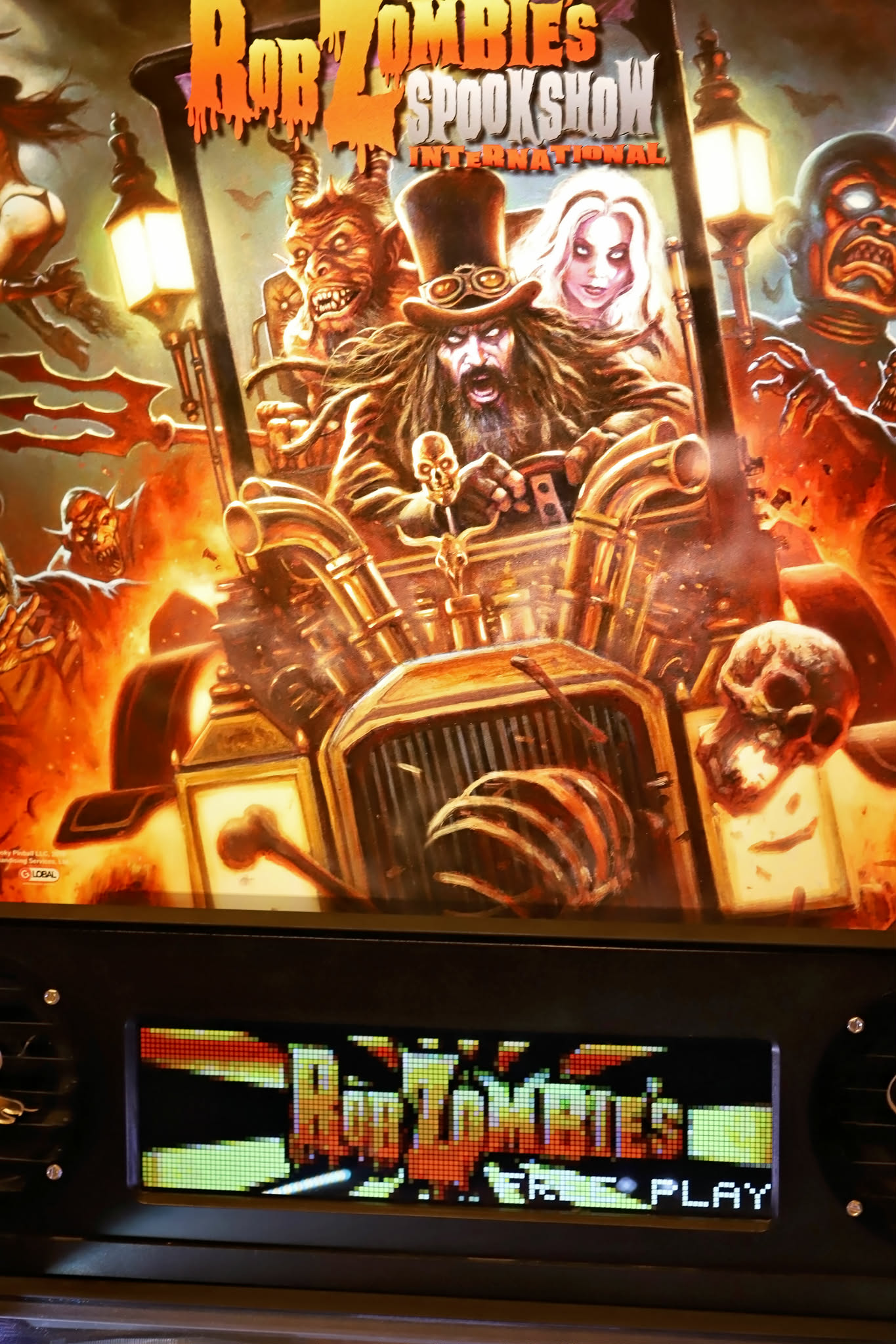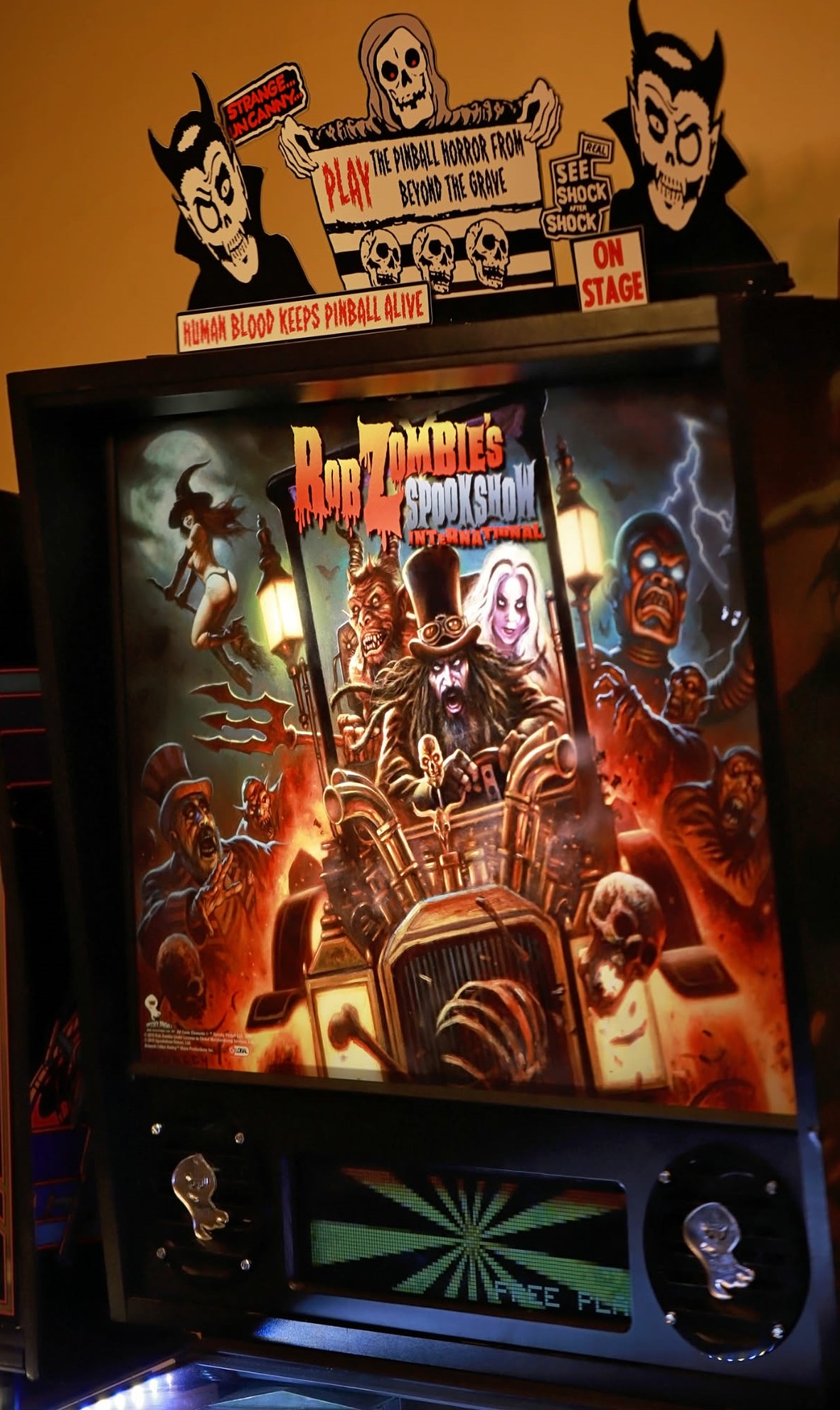 Rob Zombie’s Spookshow International Pinball Machine (Standard) was manufactured by Spooky Pinball in 2016. It has a Horror- Supernatural theme.
