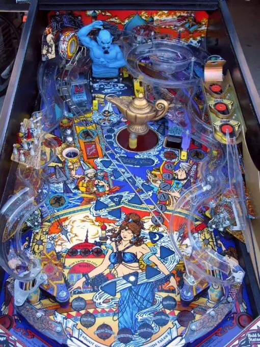 Tales of the Arabian Nights Pinball Machine by Williams was released in 1996. It is a Fantasy – Myth and Legend themed game. Tales of the Arabian Nights Pinball Machine “Your Wish Is Granted.”