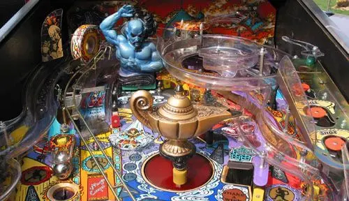 - Battle Evil Genie To Rescue Princess: Spell G-E-N-I-E to light LOCKS and the pinball vanishes below playfield into the Bazaar then reappears to begin 3-ball multi-ball.