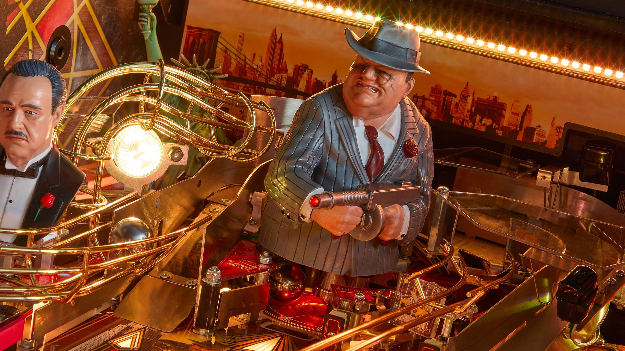 - ‘Big Mike’ Caporegime Sculpted Head: Motorized sculpture rotates with gameplay as the tip of Mike’s gun lights up with a red LED when fired. Shoot the ball in his area to battle him and other Capos featured on the digital screen.