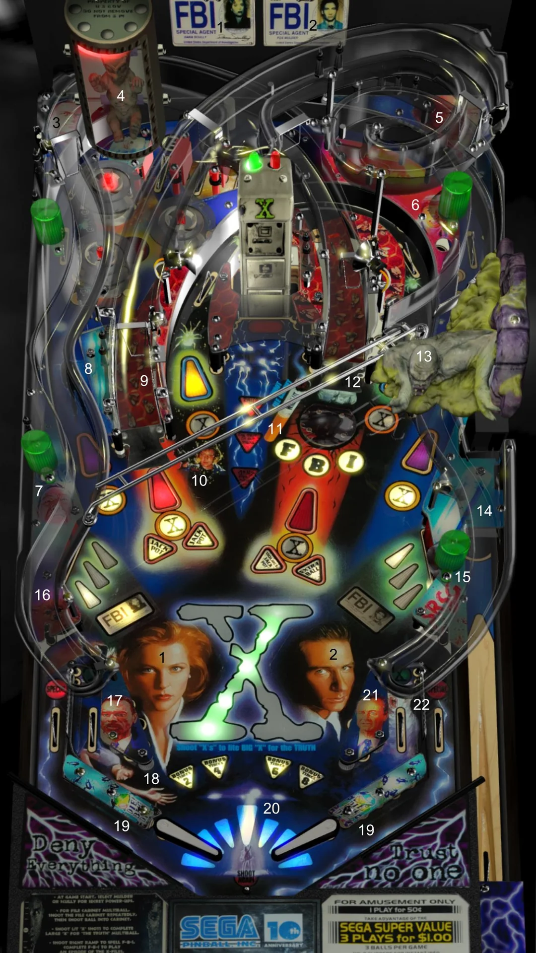 • Shoot lit “X” shots to complete large “X” for “The Truth” Multiball.