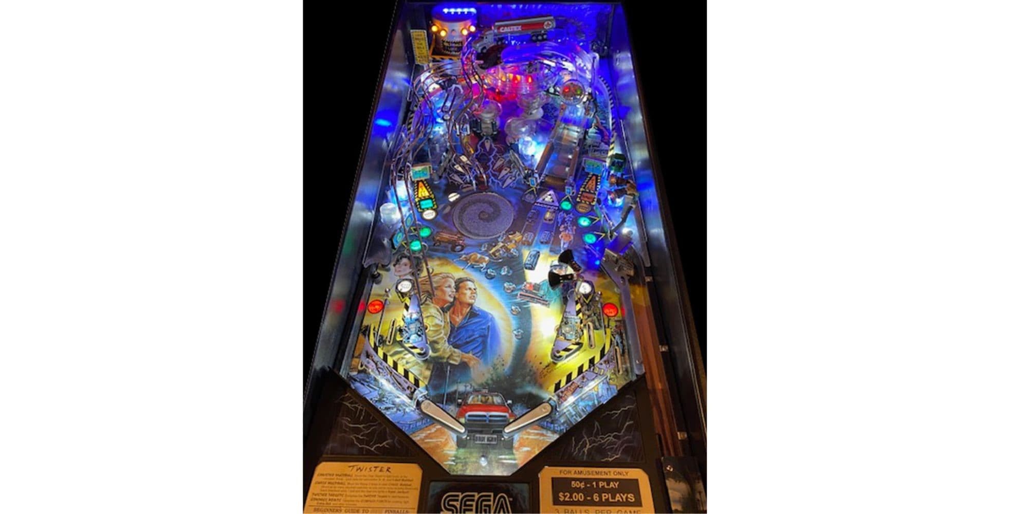 Twister Pinball Machine The Dark Side of Nature was manufactured by Sega in 1996. Twister Pinball Machine is a weather themed game based on the movie.